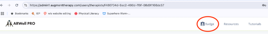 If you have lost it, you can log in at: https://admin1.augmenttherapy.com/login and find your badge by clicking the blue icon in the top right corner.