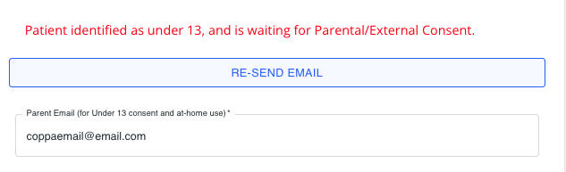 3. Check the e-mail address and press "re-send email". The caregiver will receive an email with instructions to click the button to consent for their child's data to be used in the app.