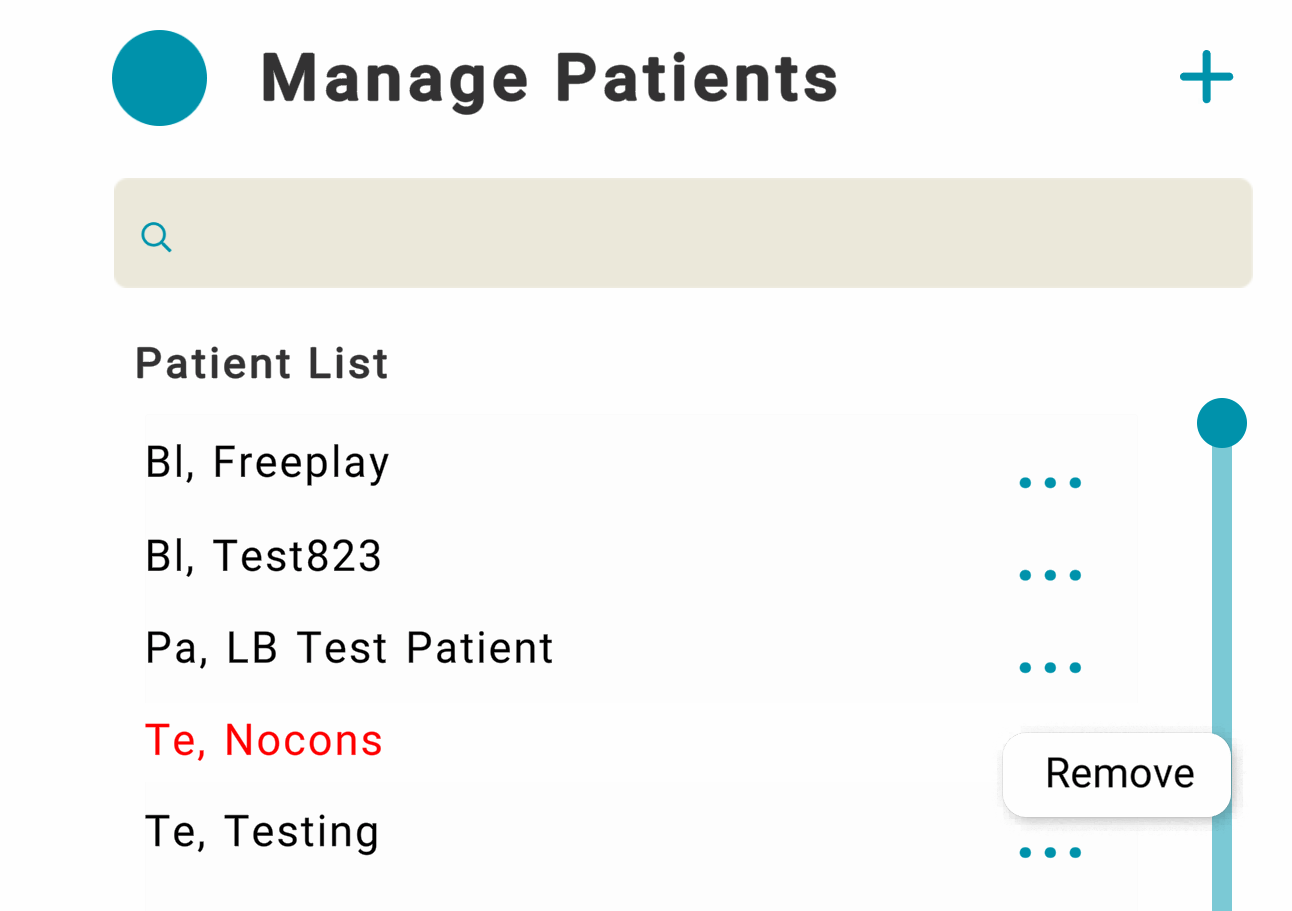 3. Find the non-consented patient (highlighted in red) and press the three dots to the right and then click "Remove".