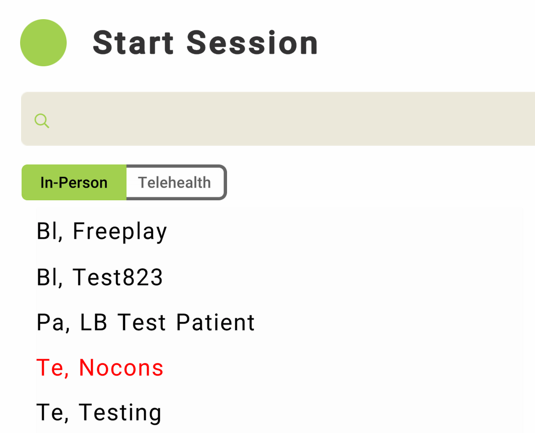 In the app, you can tell if the patient is non-consented because their name will be in red. In the admin portal, non-consented patients have a notice that says "waiting for consent".