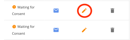 2. On your patient list, find the non-consented patient and click the "pencil" icon to edit.